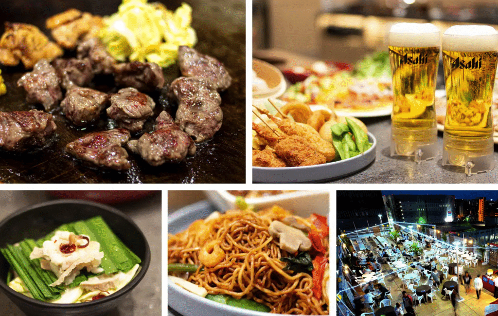 博多駅すぐ隣にあるホテル内のビアガーデン。鉄板焼きや坦々麺などメニューがとても幅広く、博多もつ鍋も食べられます。