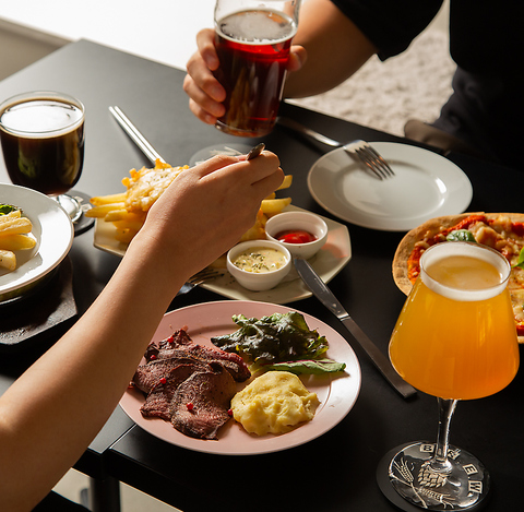 常時入れ替わる店内醸造の絶品オリジナルビール(8-10種ほど)と、一部ゲストビールも対象の2時間飲み放題コースを4,500円から楽しめるクラフトビール店。女性に人気の軽い口当たりのものから、重厚感と飲みごたえのあるものまで、様々な味わいのビールを用意しています。