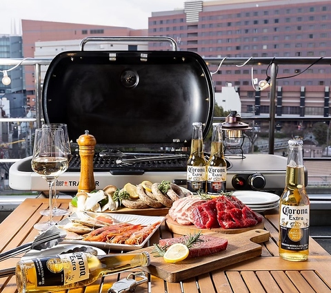 1年中ルーフトップバーベキューが楽しめる、福岡市のビアガーデンスポット。ステーキ付きのプランや、持ち込みBBQプラン、結婚式2次会貸切プランなど、シーンに合わせて少人数〜大人数まで利用可能です。