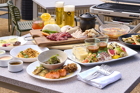 大きく広がる空と風が心地いい、開放感あふれるガーデンブラッスリー。昼は陽光が降り注ぐ優雅なランチタイムを、夜はスタイリッシュなビアテラスとして、美食とともに豊かなひとときをお過ごしいただけます。