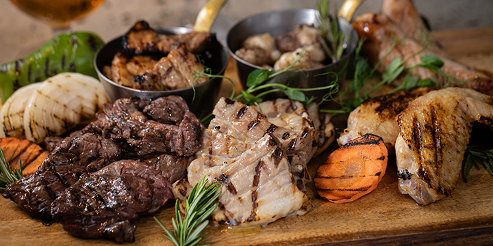 スペアリブのグリルや、パエリアなどが楽しめるビアスポット。屋根付きテラスや室内席もあるので、雨天も気にせずBBQビアガーデンを楽しめます。
