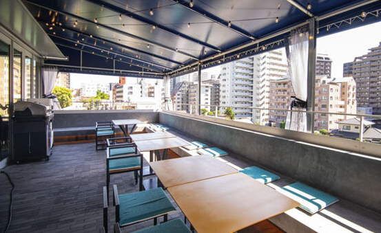 天神駅徒歩すぐの場所にある、ルーフトップバーベキューが楽しめるビアガーデンスポット。最大利用人数は40人で、誕生日や女子会などパーティーなどでご利用いただけます。