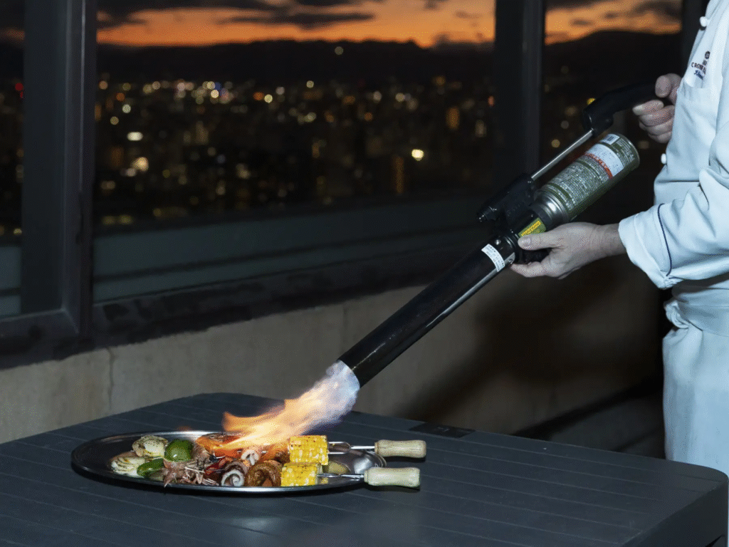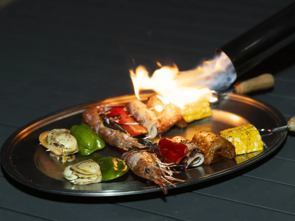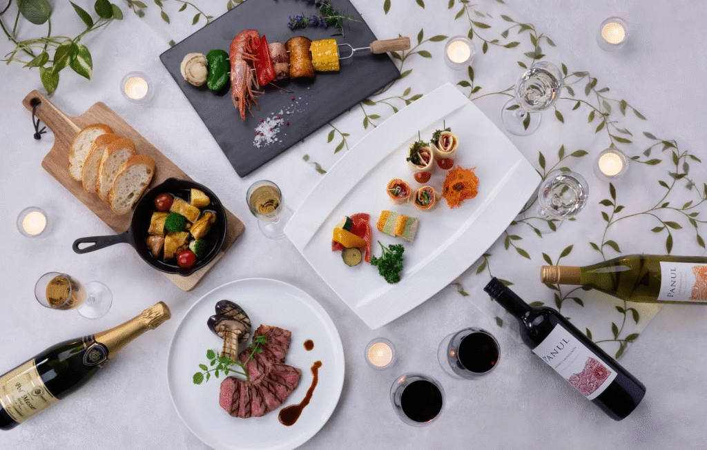 リーガロイヤルホテル広島の「ダイニング ルオーレ」では、シュラスコとビュッフェ、ライブライブキッチンの品々を食べ放題でご堪能いただけます。屋内レストラン開催なので、雨を気にせずお楽しみいただけます。