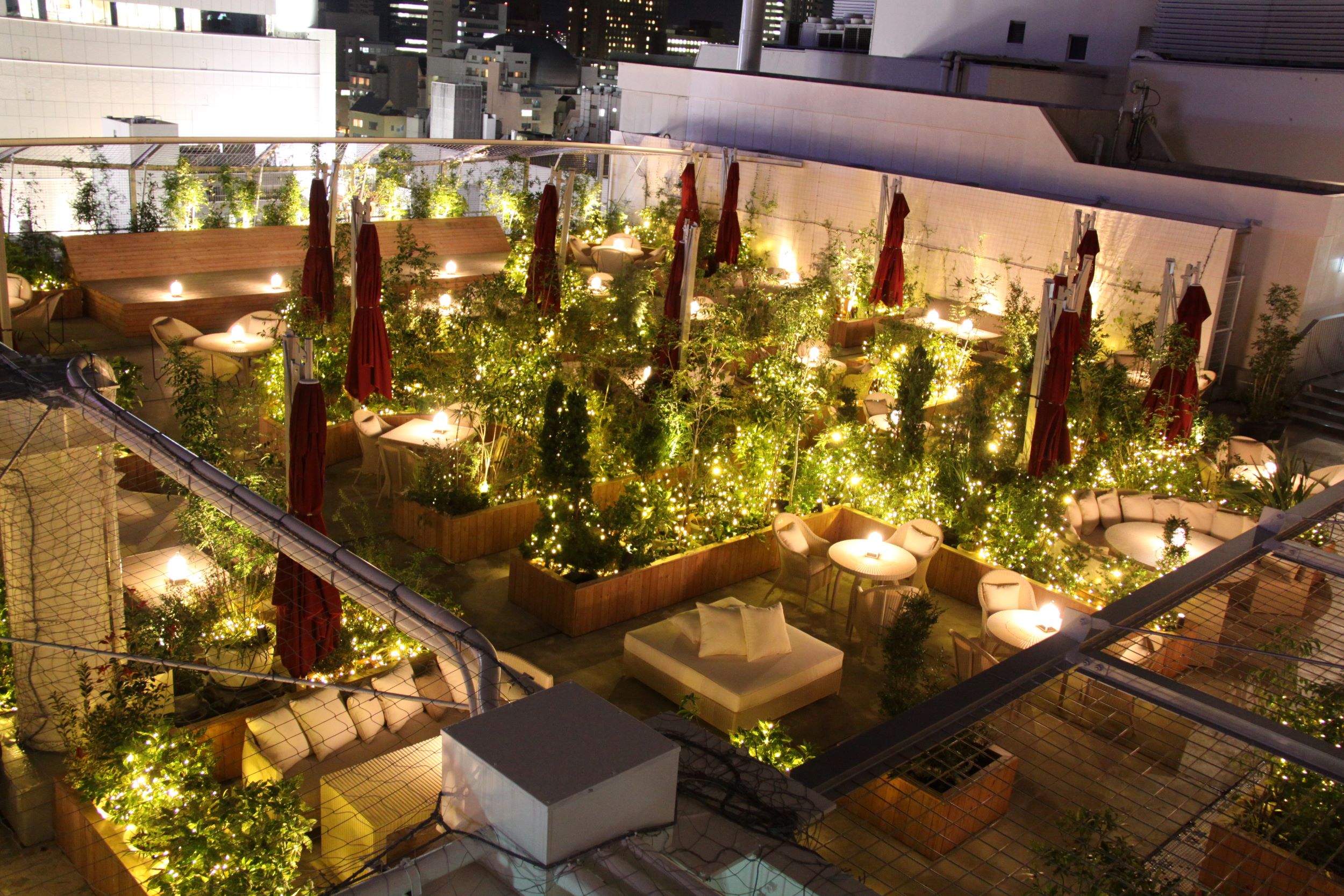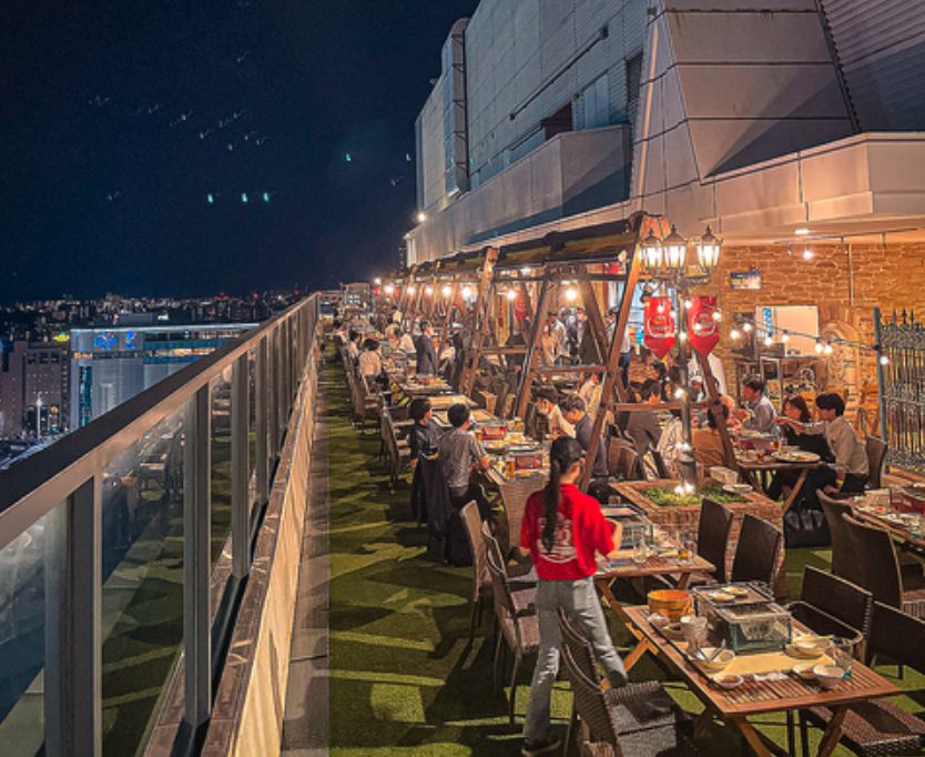 期間限定「ルーフトップビアガーデン」が開催され、開放的な屋上テラスでBBQを楽しむことができます。夜はイルミネーションが輝く開放的でキラキラした区間で、ロマンティックなひとときを過ごすことができます。