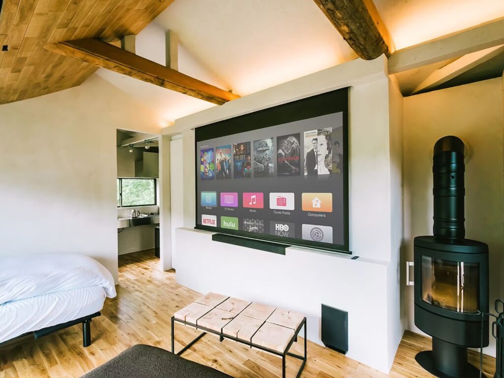 THEATER1は都心から90分でアクセスすることができる「泊まれる映画館」。施設では贅沢な食事を味わうことができる他、100インチのモニターから映し出されるシアタールームは圧巻です!浅瀬屋根を見上げながらの贅沢なプライベート空間を楽しむことができます。敷地面積の90%が森林に覆われている中で楽しむバーベキューは、本格的なアウトドアを楽しめます◎