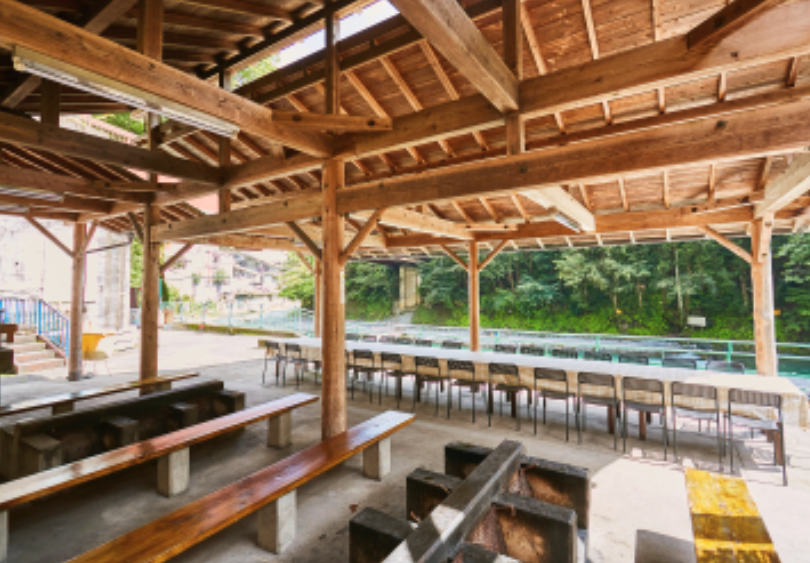 東京都あきるの市の秋川渓谷に立つ老舗旅館「自然休養村 山渓」。その敷地内でバーベキューや川遊びを楽しめます!バーベキューはAコース〜Cコースまで種類豊富なコースが用意されており、たっぷりのBBQ食材を召し上がれます!バーベキュー場は屋根付きなので、夏の暑い季節でも楽しめます◎手ぶらでバーベキューを楽しめるのもポイントです!